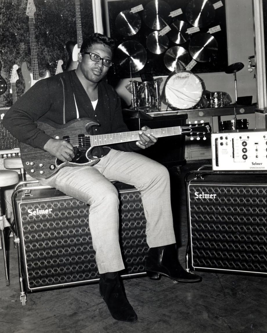 Bo Diddley in a music shop on Shaftesbury Lane, London, England; September 24th, 1965. (Photo by Tony Gale/Pictorial Press-Cache Agency)
