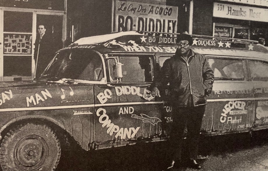 Bo Diddley with Duchess, Manchester 1965. Photo by Brian Smith.