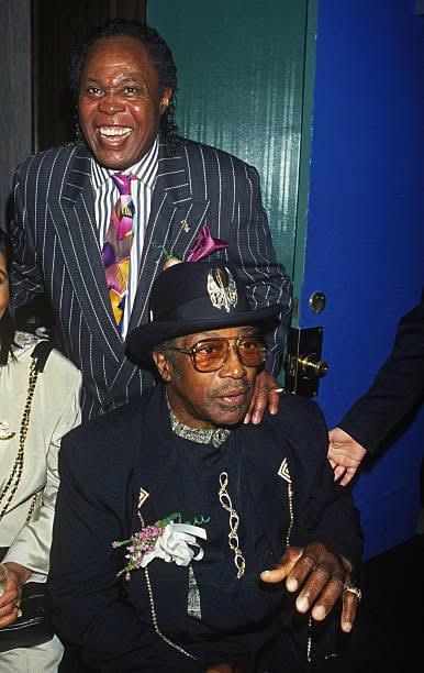Sam Moore and Bo Diddley who received a lifetime achievement award from the Rhythm ‘n’ Blues Foundation on February 29, 1996 in New York City. (Photo by Kevin Mazur/WireImage).