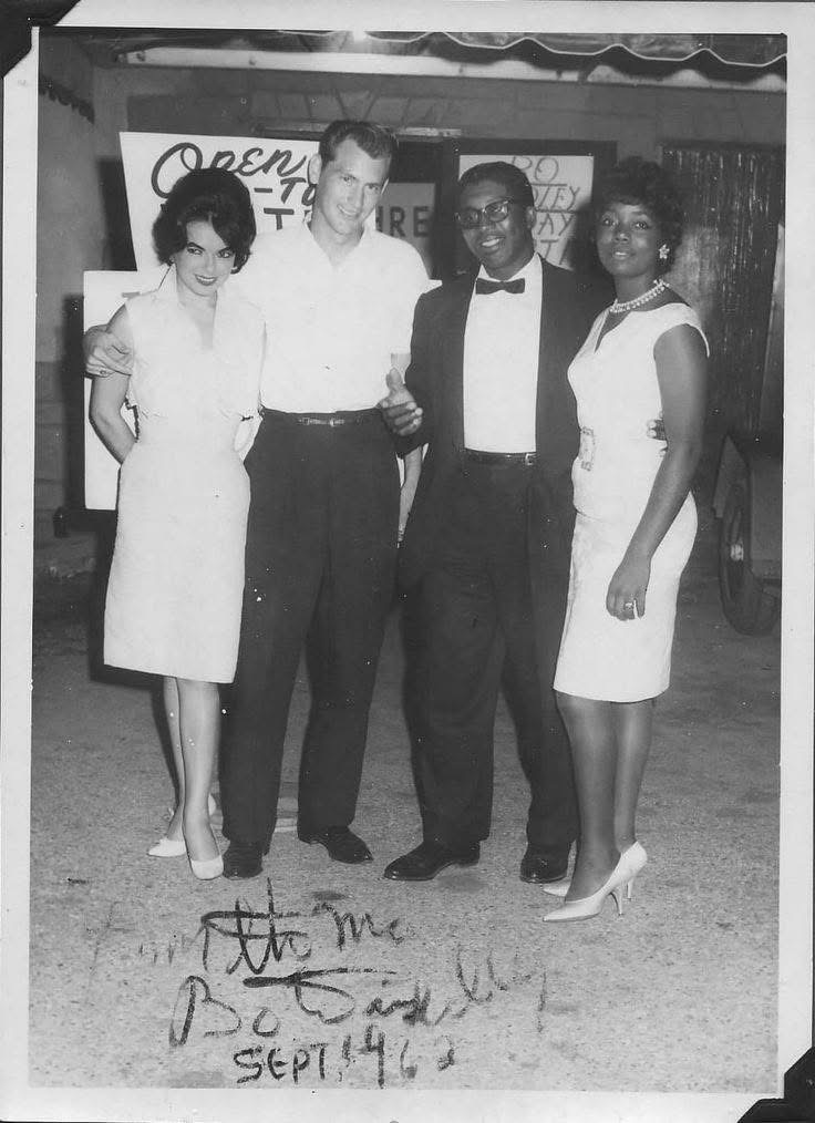 Bo Diddley, The Everly Brothers, and Julie Grant. Photo 1963, Birmingham, U.K.