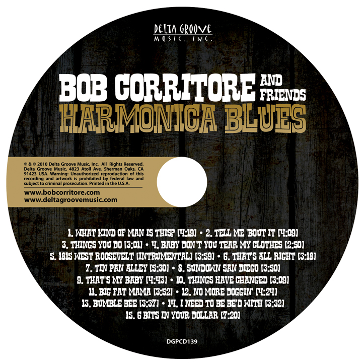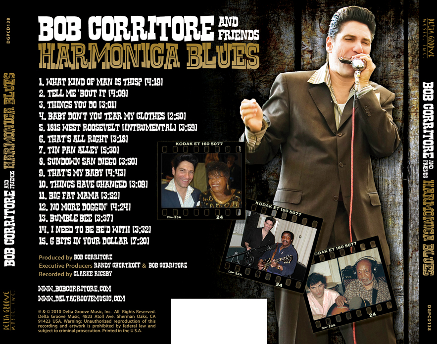 This CD celebrates the 40th year of Bob Corritore’s harmonica playing. It is a treasure chest of 15 great blues songs selected from Bob’s master tape vaults, and features guest appearances by Bob’s favorite blues artists. It also marks the 4th record to bear Bob Corritore’s name, and is Bob’s debut on the great Delta Groove record label (Thank you RandyChortkoff) Cover design by Josh Temkin, front cover photo by David Blake, back cover photo by Dusty Scott, additional photos by Joan Hunt, Dick Rice, Bob Kieser, Kim Danielson, Timm Martin, David Blake, Cookie Taylor, Drew Verbis, Dale Baich, and Patrick Rynn.