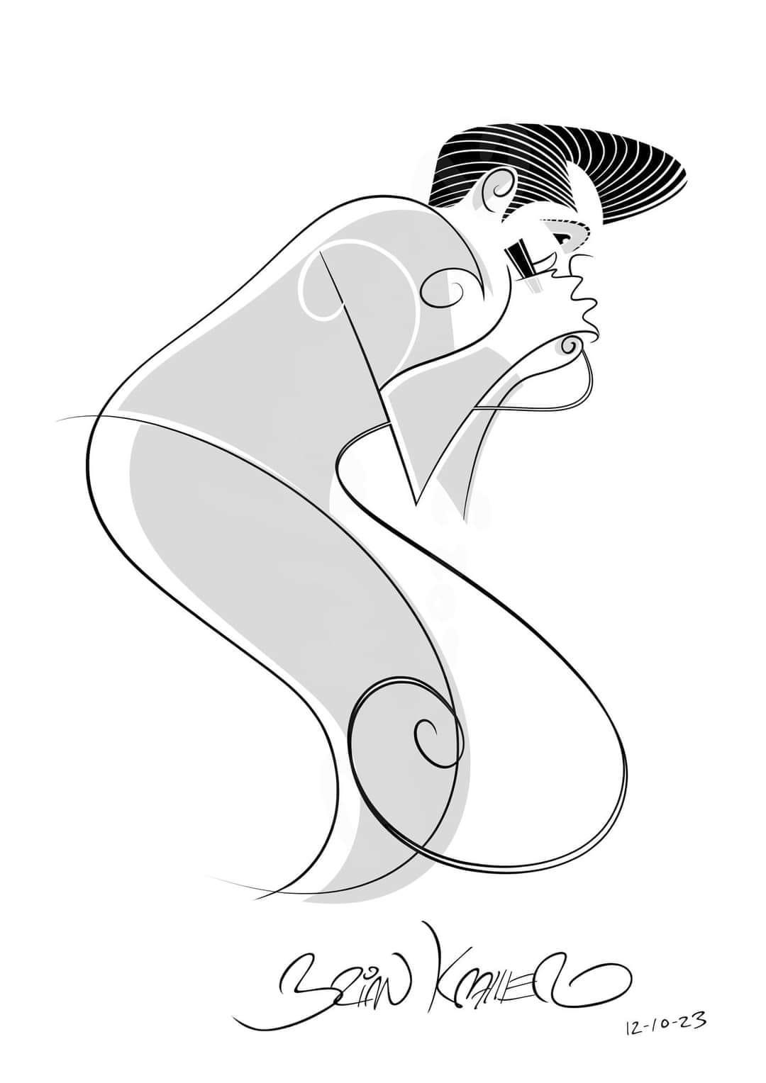 Painting of Bob Corritore and Lil’ Ed at the Big Blues Bender by Scramble Campbell (2014)