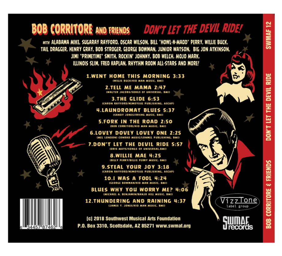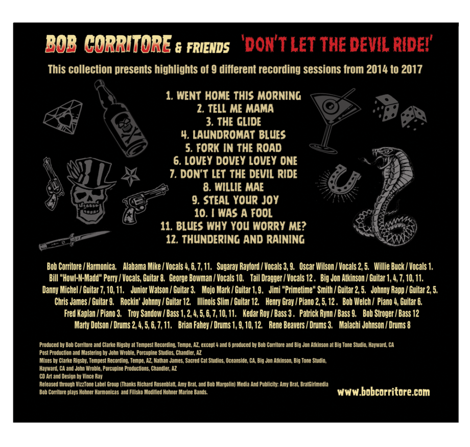 A career high album featuring Bob Corritore’s harmonica interacting with killer vocalists and an array of all-star bands! This album showcases highlights of 9 different recording sessions between 2014 to 2017! And check out the spectacular CD design by legendary illustrator Vince Ray!