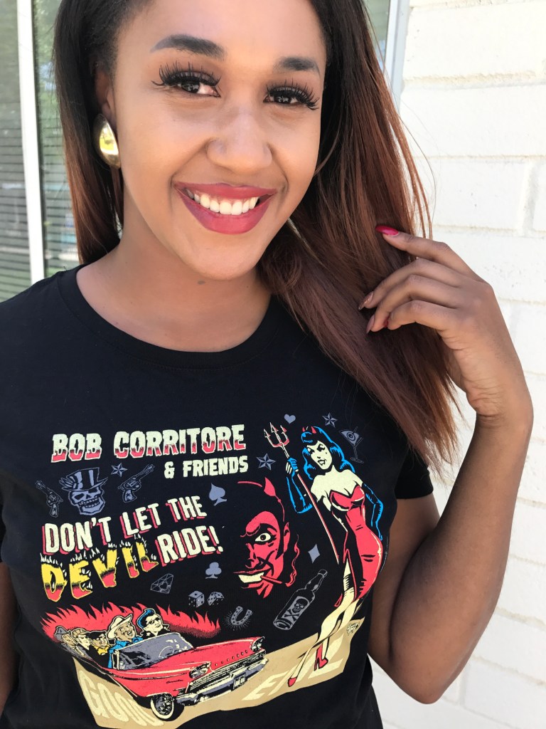 T-Shirts available at Bob’s shows! T-Shirt modeled by Marjani Viola Hawkins.
