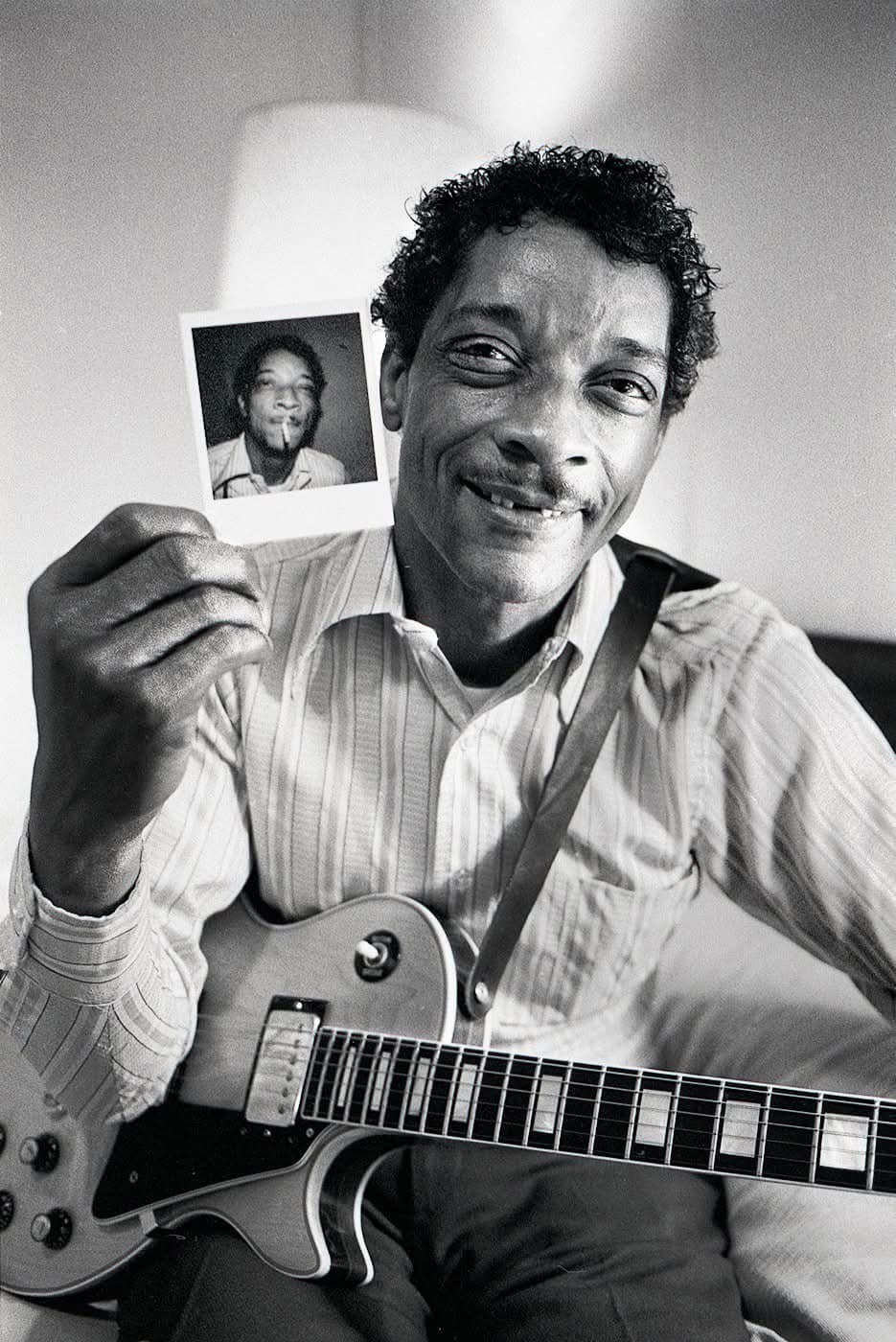 Hubert Sumlin holding up a Polaroid of himself! Photo by David Herwaldt.