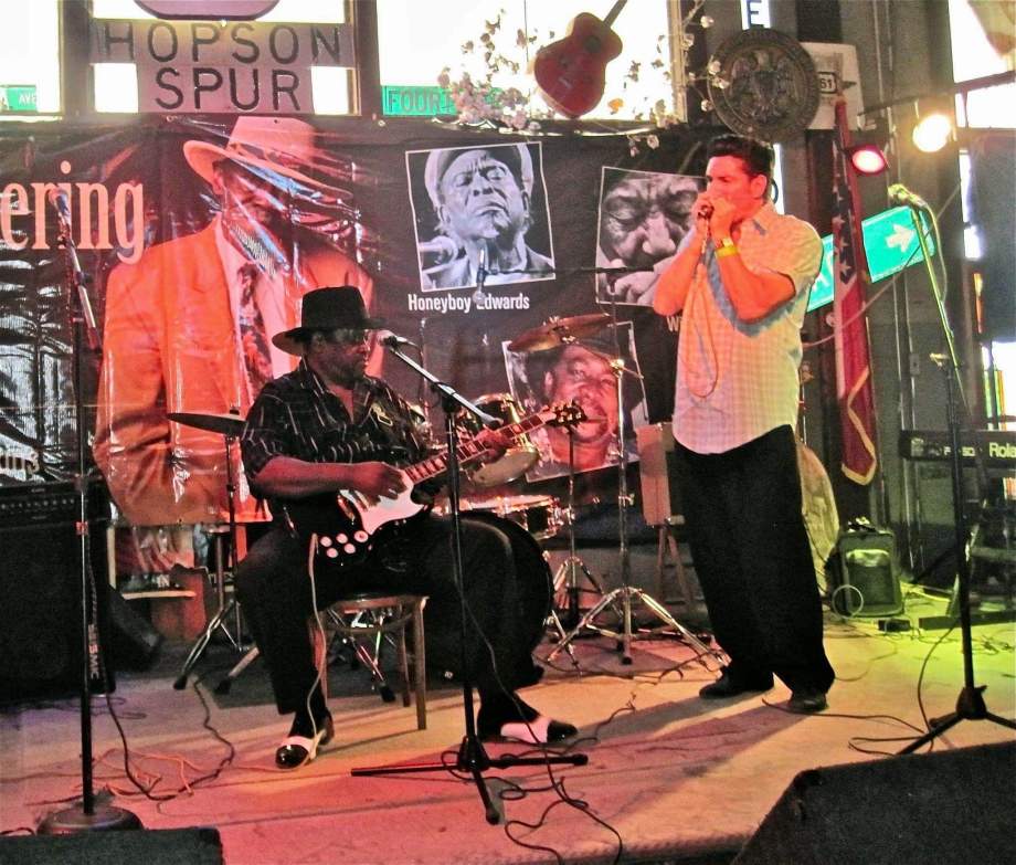 Bob Corritore, Dave Riley performing at the Connor Hotel, Helena, Arkansas as part of the 2011 King Biscuit Blues Festival. Photo by Nanny Kajuiter.