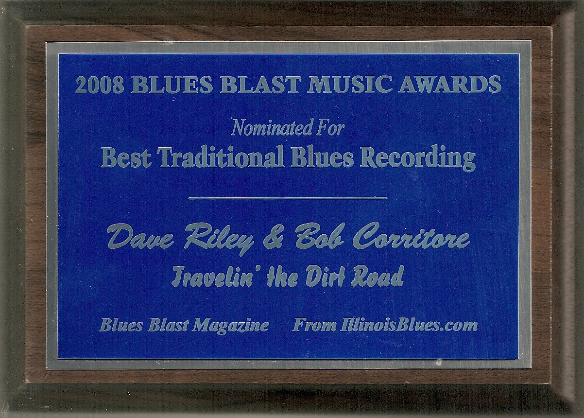 Dave Riley & Bob Corritore’s Blues Blast Music Award Nomination Plaque
