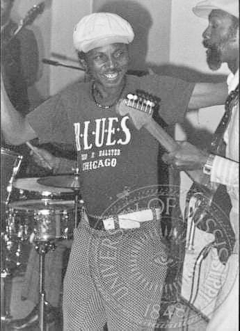 Chicago blues collides with ’70s pop culture! Pictured here is Good Rockin’ Charles with a Rod Stewart/If You Think I’m Sexy t-shirt. Photo Jim O’Neal.