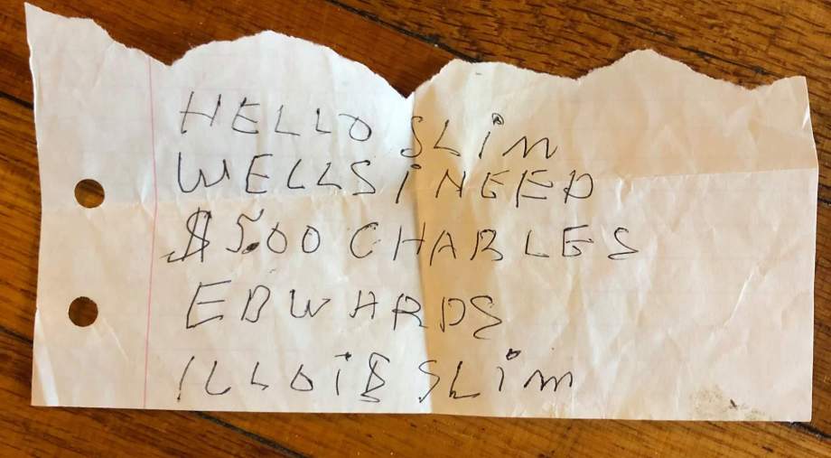 Good Rockin’ Charles note to Illinois Slim. Courtesy Illinois Slim.