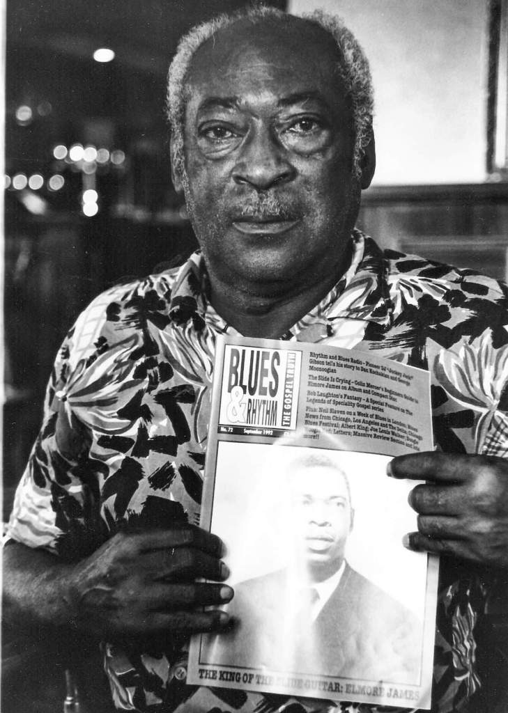 Henry Gray holding up a Blues & Rhythm Magazine! Photo Phil Wight.