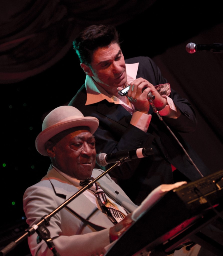 Bob Corritore and Henry Gray performing in 2016 at the Blues Bast Music Awards. This is the year when Blues Blast Magazine presented Henry with a lifetime achievement award. Photo Kurt Foor.