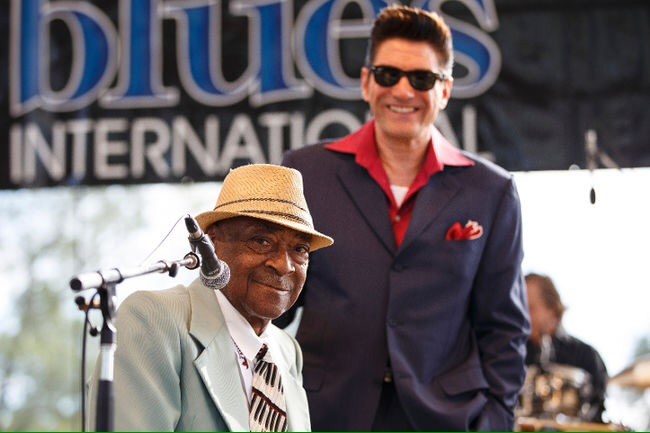Henry Gray and Bob Corritore at the 2013 Sin City Soul & Blues Revival, Las Vegas. Photo Marilyn Stringer.