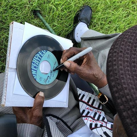 Bob Corritore’s last gig with Henry Gray was the 2019 Baton Rouge Blues Festival. It was supposed to be on a big outdoor stage but because of bad weather, they moved everything indoors. Henry at age 94 just killed it. Henry started having major health issues shortly after that and passed in February of 2020 (right before the pandemic). Also in this photo is Lil’ Ray Neal on Guitar and Miguel Hernandez on bass. Photo by Ruth Spicer!