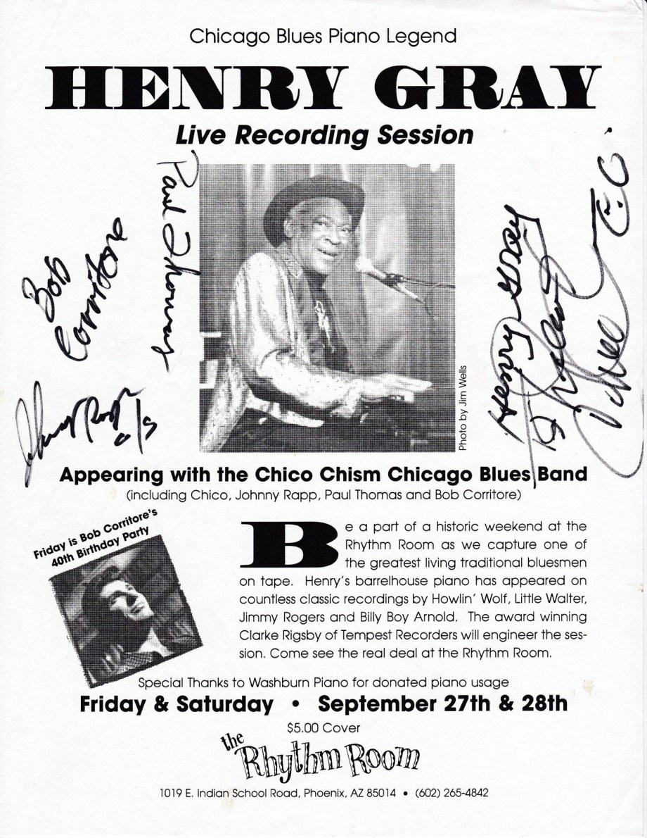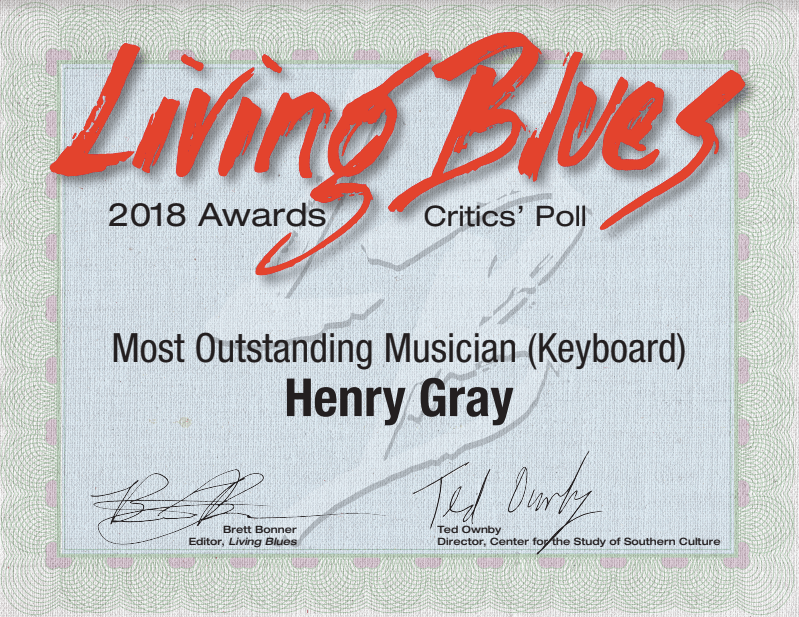 Henry Gray performing at the Strathmore, Bethesda, MD, 2006, at a National Endowment For The Arts event celebrating that year’s class of fellowships with Henry being among them! L-R: Henry Gray, Andy Cornett, Earl Christopher, Bob Corritore, Lawrence Taylor.