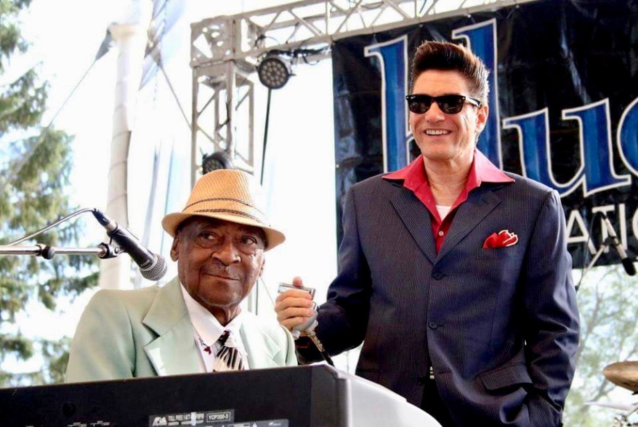 Bob Corritore and Henry Gray at the Edmonton Blues Festival, Canada in 2015. Photo by Adrianna Marie.