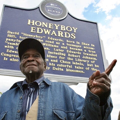 Honeyboy Edwards by his Mississippi Blues Historic Trail Marker.