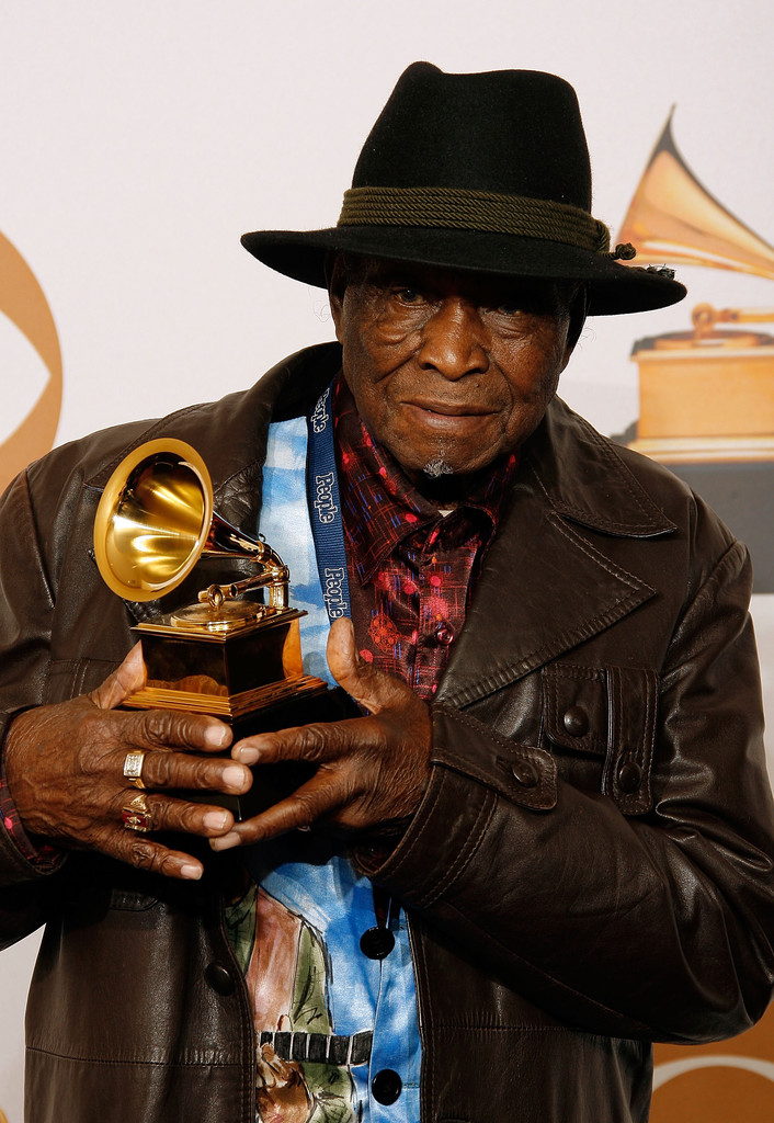 Honeyboy Edwards accepts the Grammy in 2008 for Best Traditional Blues Album, being one of the four featured artists on the winning album Last Of The Great Mississippi Delta Bluesmen.