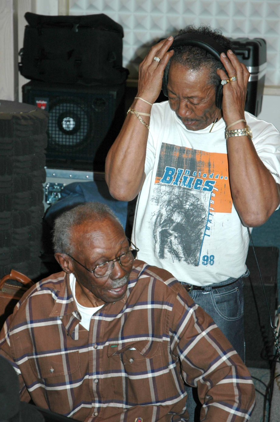 Willie “Big Eyes” Smith and Bob Corritore at Tempest Recording. Photo by Dick Rice.