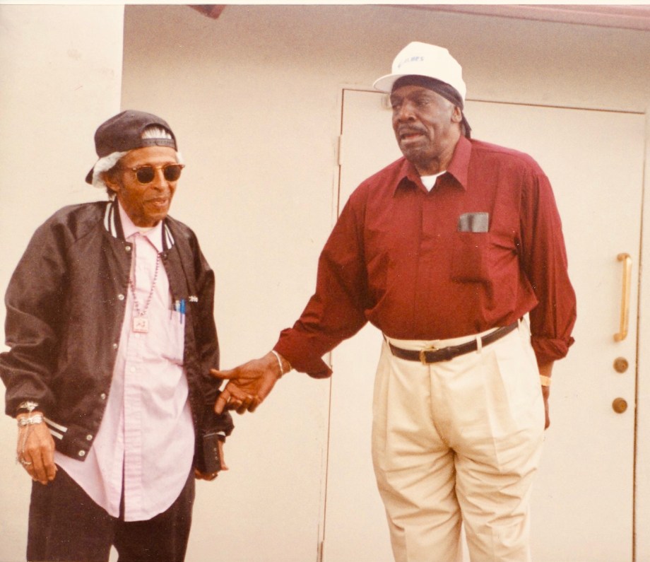 Chico Chism and Nappy Brown on session break at Tempest Recording, both wearing their do-rags. Photo by Dick Rice.