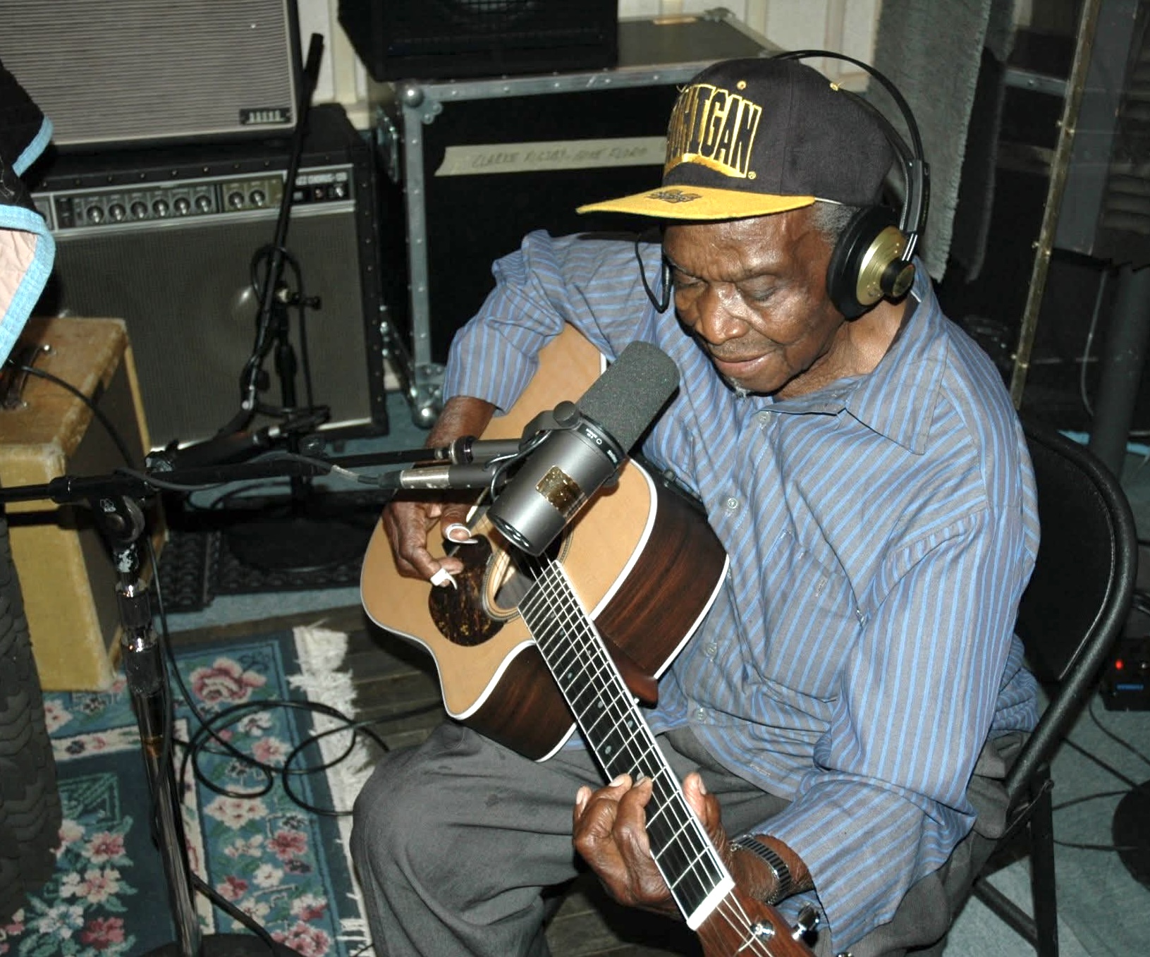 Honeyboy Edwards in session at Tempest Recording. Photo Clarke Rigsby.