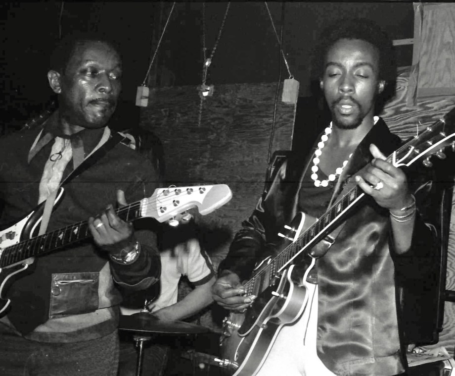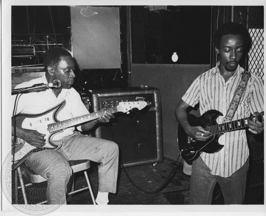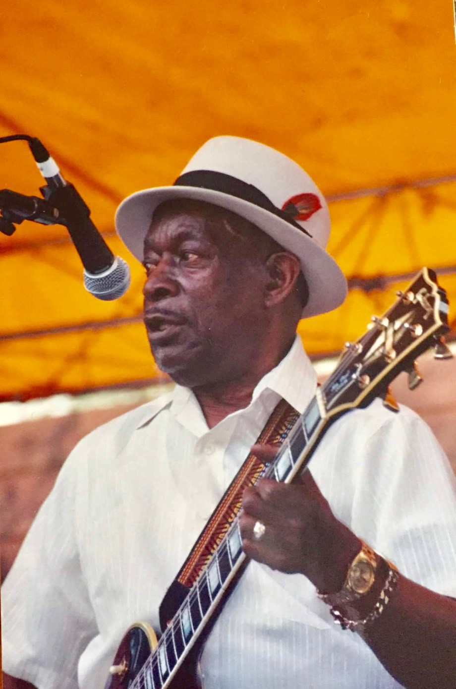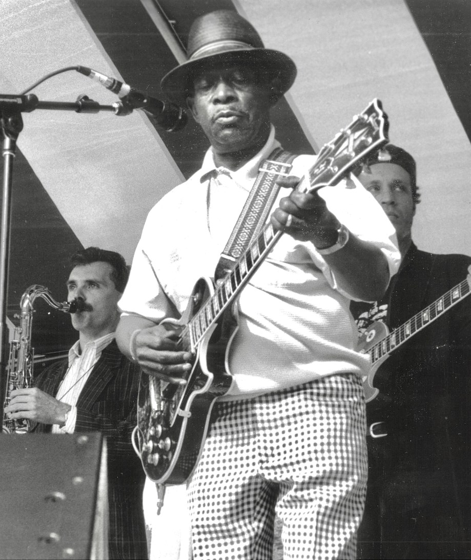 John Brim at Chicago Blues Festival with Sam Burckhardt and Steve Freund in background.