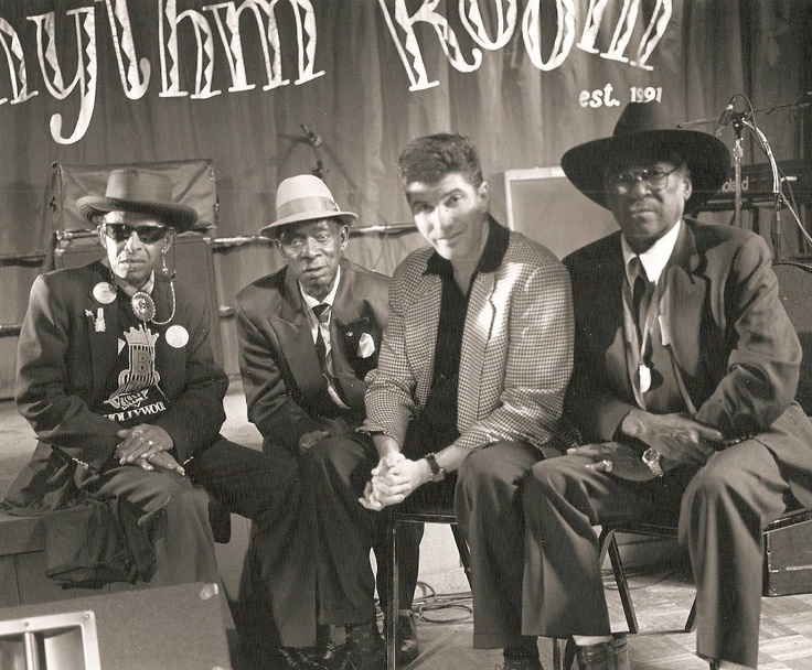 Chico Chism, John Brim, Bob Corritore, Henry Gray at the Rhythm Room. Photo by Marilyn Szabo.