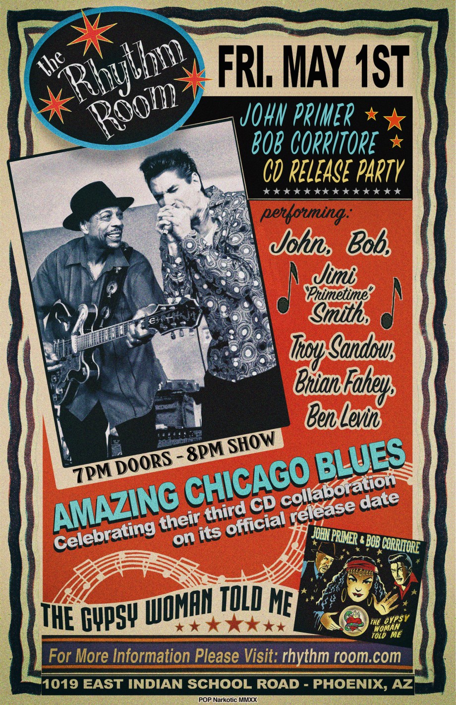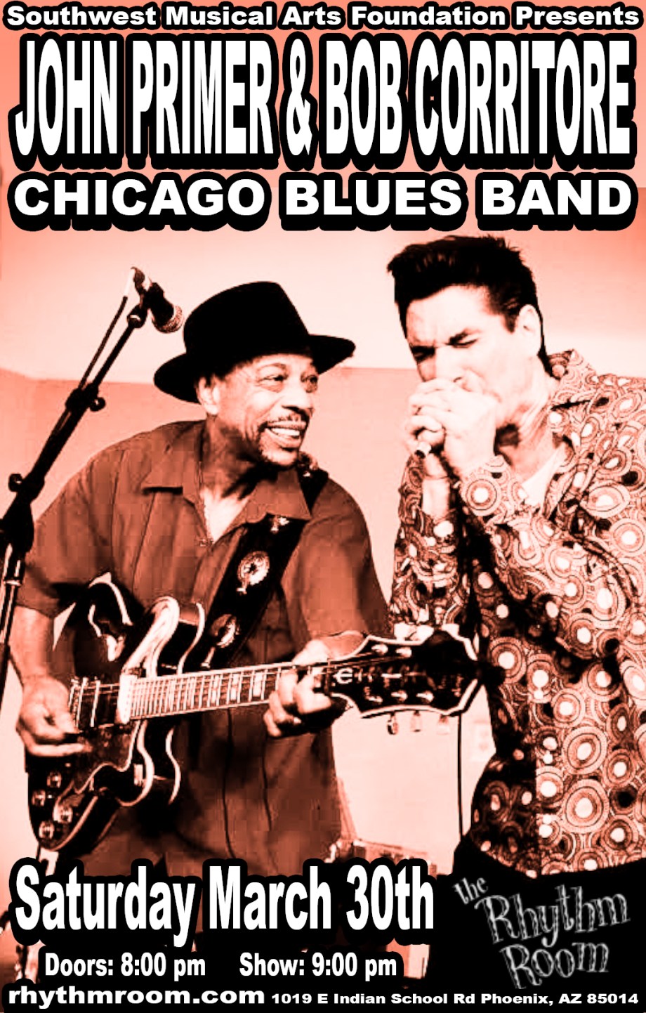 John Primer and Bob Corritore at the Rhythm Room in 2014. Photo by Dave Blake.