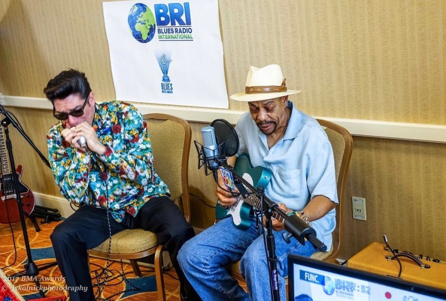 Bob Corritore & John Primer, filming/recording for Blues Radio International, in Memphis 2017.