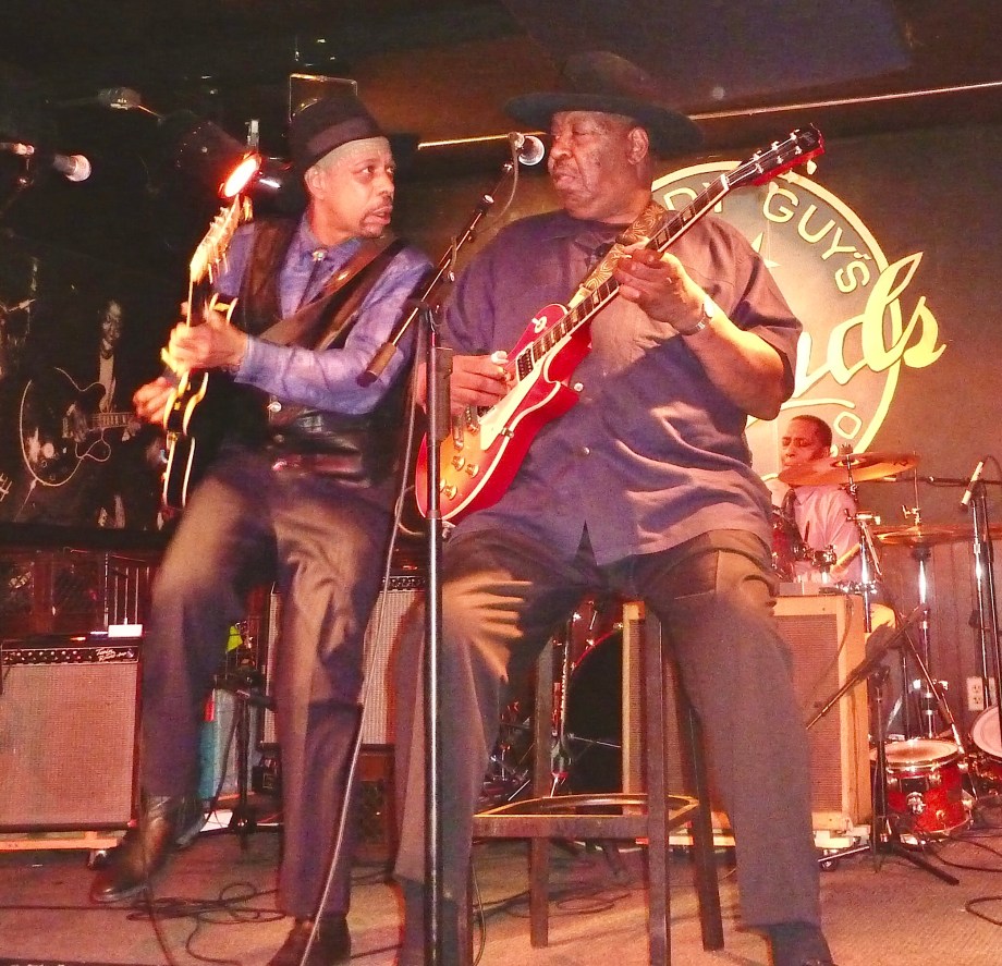 John Primer getting down with Magic Slim & The Teardrops with Nick Holt in the background.