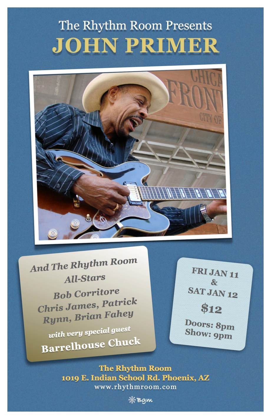 Guitarist/vocalist John Primer has traveled a legendary path in the blues to become a legend in his own right. Born in Camden, Mississippi on March 5, 1945, John relocated to Chicago with his mother in 1963. John’s blues career started in 1974, playing guitar alongside Sammy Lawhorn in the house band at Theresa’s Lounge on Chicago’s Southside. It was there that John backed up Junior Wells and James Cotton on a nightly basis. He then joined Willie Dixon’s Blues All-Stars for a brief stint before joining the Muddy Waters Band for 3 years (until Muddy’s passing), and then a 14 year run with Magic Slim & The Teardrops. During his time with Slim, John also served as an A&R man for Wolf Records, organizing numerous recording sessions with various Chicago artists, providing a important documentation of that time period. Wolf Records launched John Primer’s solo career with the 1991 release of Poor Man Blues and John has not looked back since. While touring the world extensively and releasing a steady stream of high-quality releases, John has somehow found the time to collaborate with Bob Corritore. Though they both travel in different orbits, when they do get together, they celebrate their common bond of Chicago Blues with some critically acclaimed recordings and live performances. Please enjoy this photo page which celebrates the magnificent John Primer!