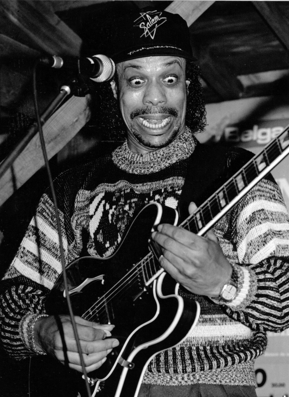 John Primer performing at the Banana Peel, Ruiselede, Belgium in 1990. Photo Pierre Degeneffe, courtesy Rien Wisse/Block Magazine Archives.