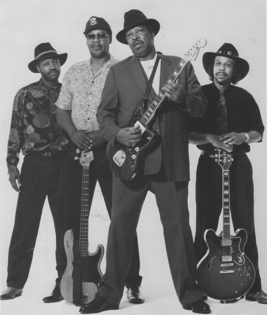 Left to right: Andrew Odom, Lucky Peterson, Little Milton, Nate Applewhite, John Primer. Photo courtesy of Lisa Becker Primer.