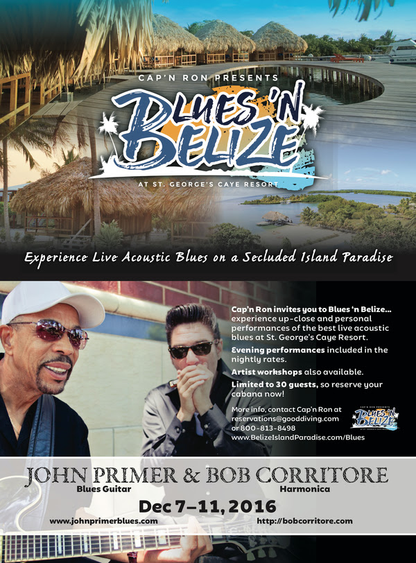 John Primer & Bob Corritore, St. George’s Caye Resort, Belize, 2016. Photo Marjani Viola Hawkins.