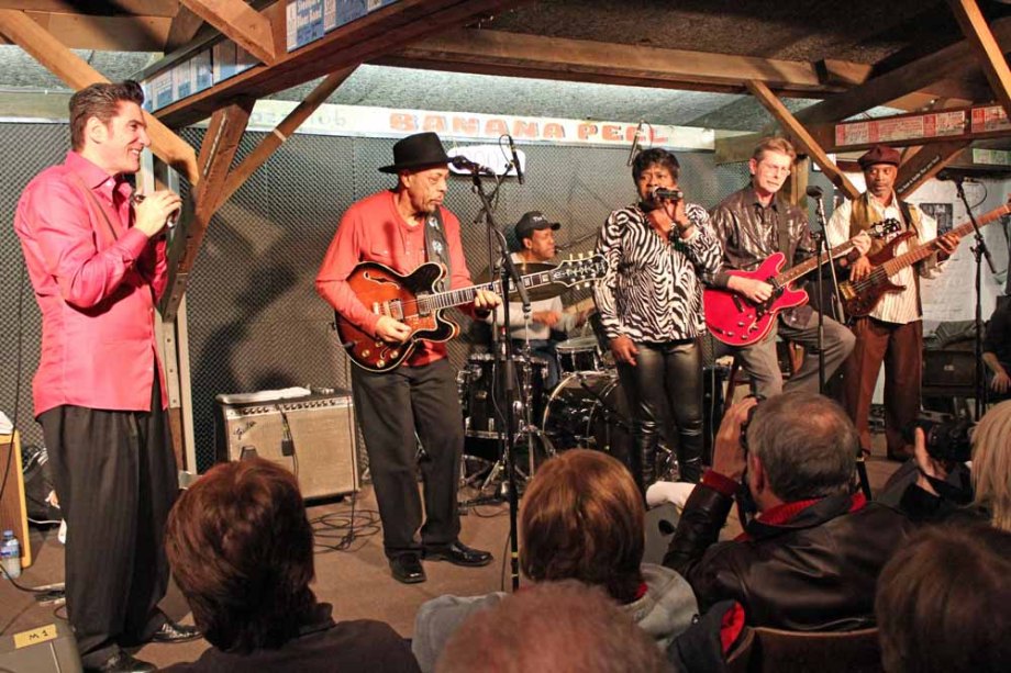 Bob Corritore, John Primer, Willie Hayes, Peaches Staten, Billy Flynn, Melvin Smith at the Banana Peel in Belgium 2012.