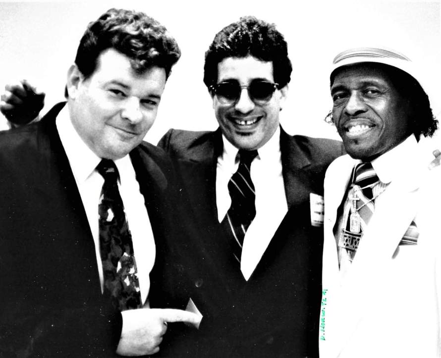 James Harman, Chris Cain, and Junior Wells. Photo courtesy of the James Harman archives.