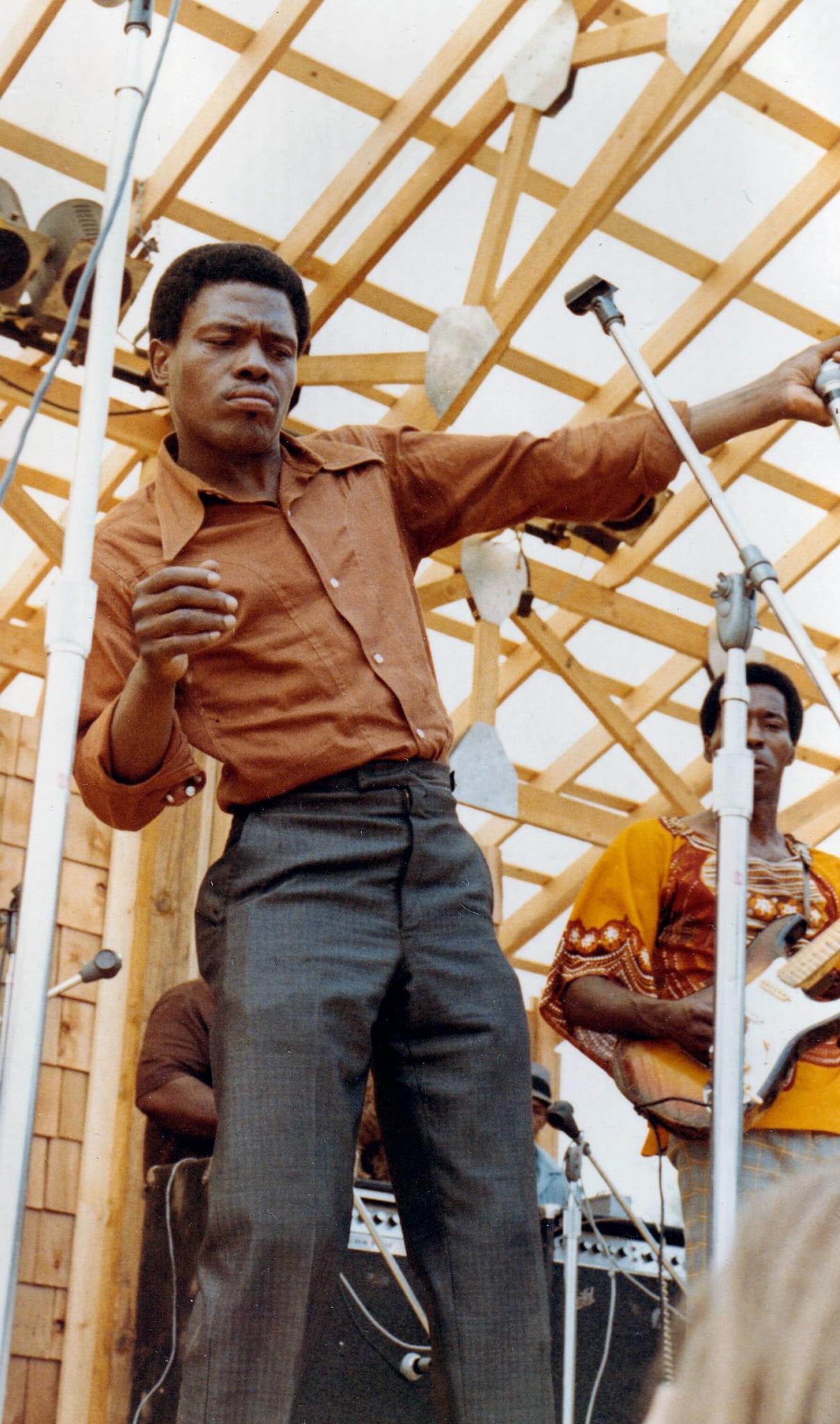 Junior Wells with Buddy Guy in the background at the 1970 Ann Arbor Blues & Jazz Festival. Photo by Jeff Todd Titon.