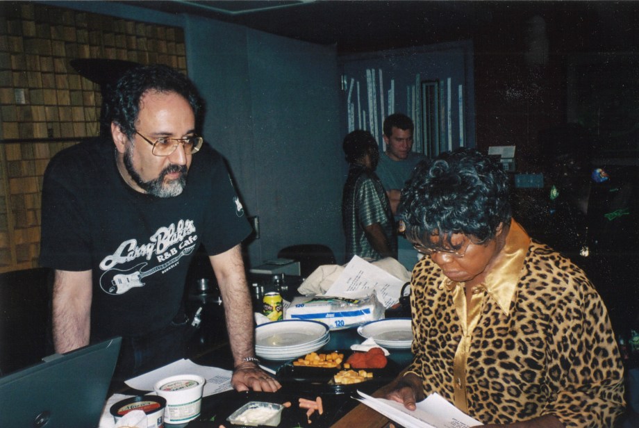 Bruce Iglauer & Koko Taylor in session at Rax Trax Recording Studios in Chicago – June 2005 (Photo by Bob Corritore)