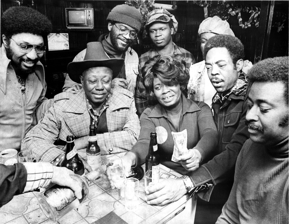 Muddy Waters, Viola Spearman (Koko’s Sister), Levi Walton (Koko’s Brother), Otis Spann, Vera Walton (Levi’s Wife), Elga Edmonds, Koko Taylor, Robert Taylor, Jimmy Rogers, Savannah Becton (Koko’s Sister) at Silvio’s Lounge – mid 1950s (Photo From the Koko Taylor Collection, Courtesy of Alligator Records – Thank you Tim Kolleth)