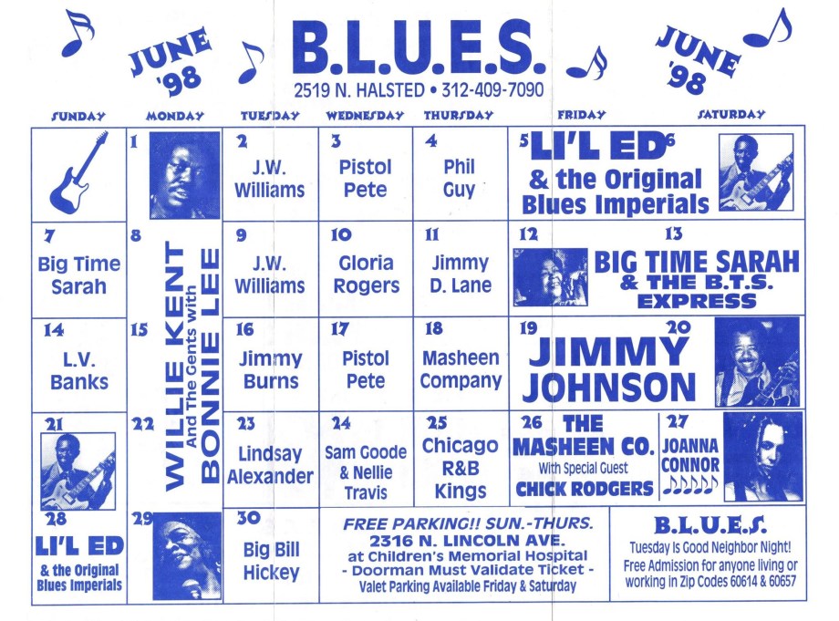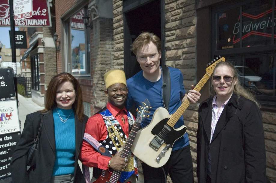 Lil’ Ed appeared on The Conan O’Brien Show in 2006! They had a comedy bit that took place at B.L.U.E.S on Halsted, Chicago when Conan asked Lil’ Ed to teach him the blues. Here is photo from the filming day.