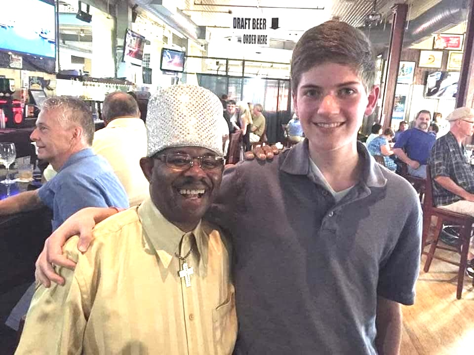 Lil’ Ed and a very young Ben Levin in 2015. Ben has grown up to be a prominent blues piano player and the two have made a number of recordings together! This photo was from their very first meeting.
