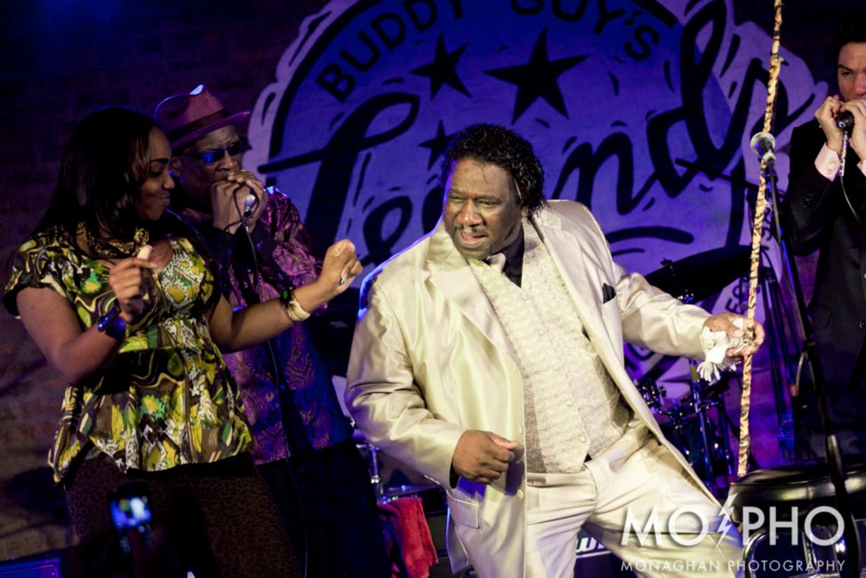 On March 31st, Mud Morganfield held the CD release party for Son Of The Seventh Son, his first national release just out the week before on Severn Records. The party took place at Buddy Guy’s Legends in Chicago to a packed house of blues lovers who were there to see the eldest son of the great Muddy Waters! We must mention the wonderful opening set that night by the Chicago Blues Angels. We also have to acknowledge the great appearances by Katherine Davis and Deitra Farr who each sang a song at the opening of Mud’s second set. In addition to the show at Legends, Mud also made a televised appearance the day before on WGN which was aired throughout the USA! For both of these events, Mud reunited the stellar cast of backing musicians that appeared on the CD. Here are some photos from this blues celebration!