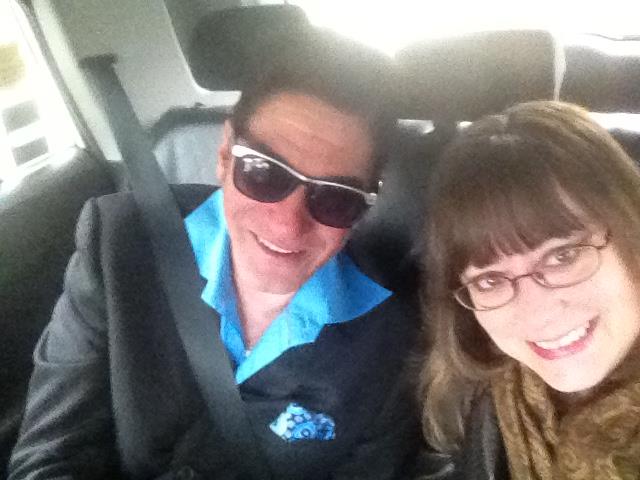 Bob Corritore & Amy Brat arrive by cab to WGN for the Mud Morganfield live broadcast performance. Amy took this with her cell phone.