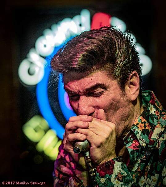 Bob Corritore performing at Ground Zero Blues Club, Clarksdale, MS in 2017. Photo by Marilyn Stringer.