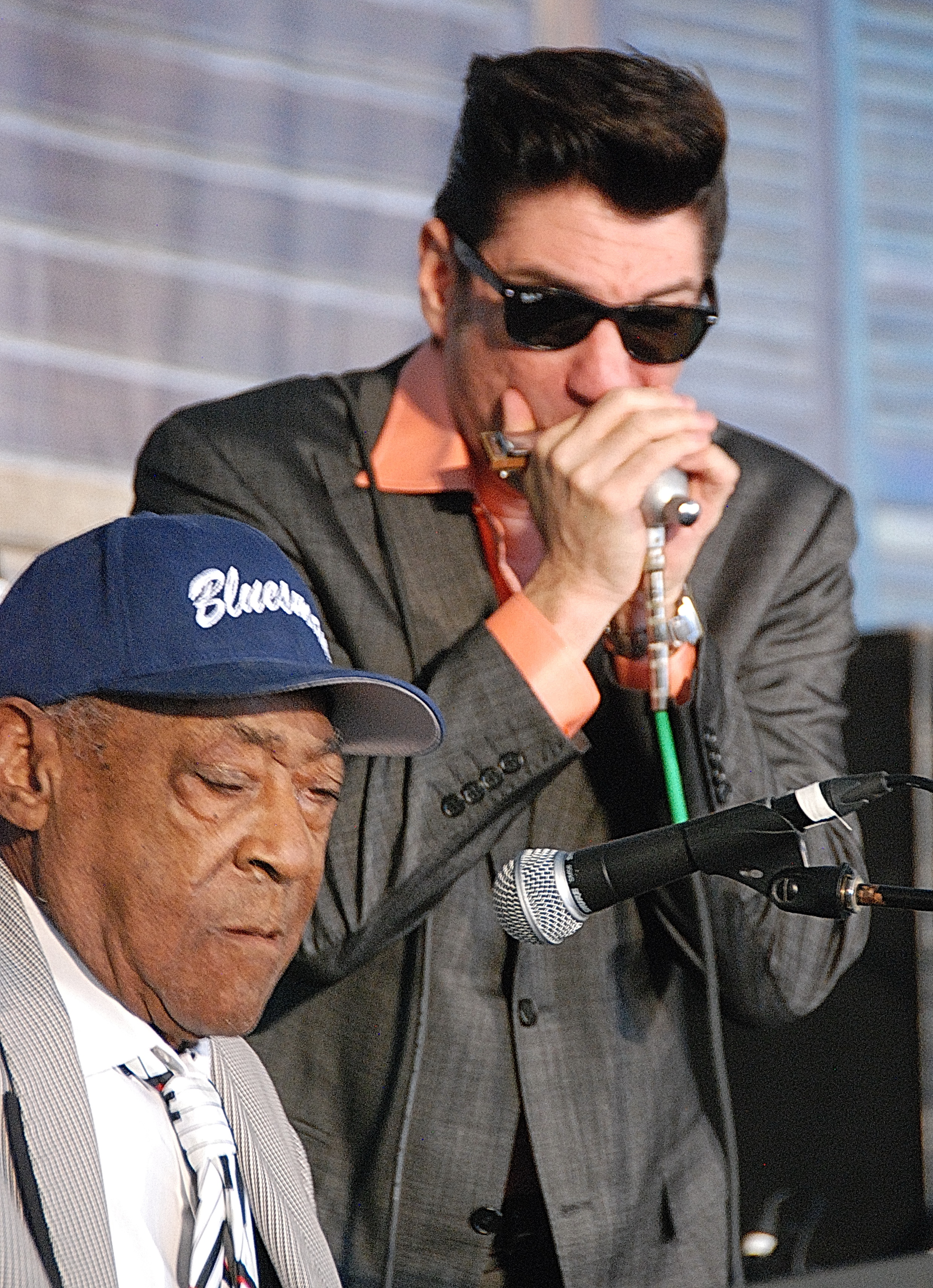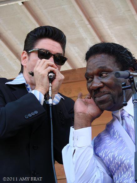 Bob Corritore and Mud Morganfield at the 2011 Chicago Blues Festival. Photo Amy Brat.