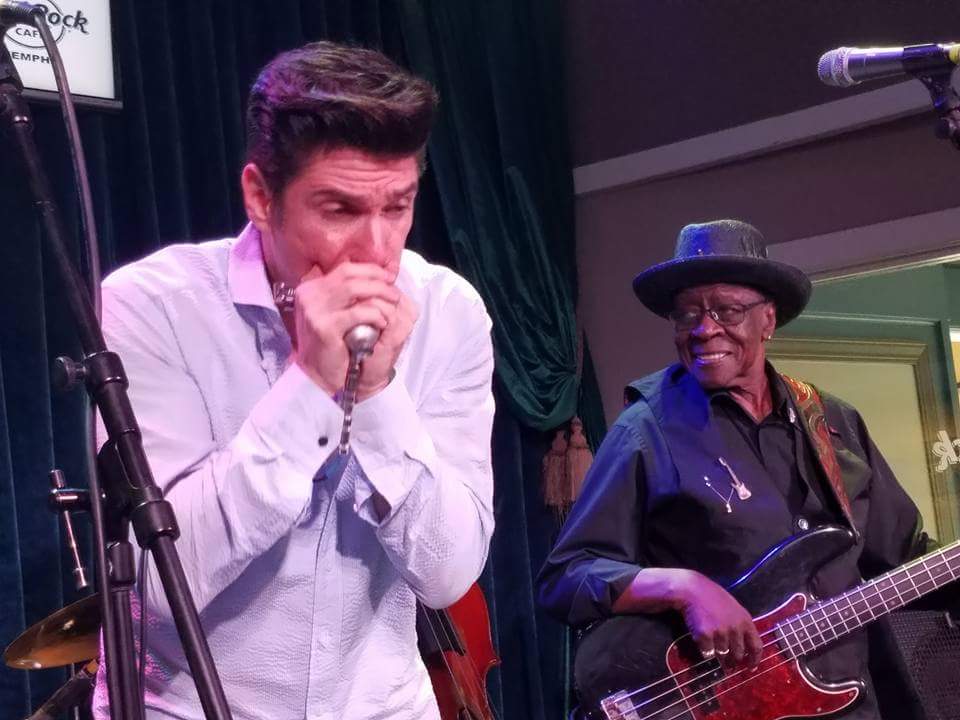 Bob Corritore and Bob Stroger at the Hard Rock Cafe, Memphis.