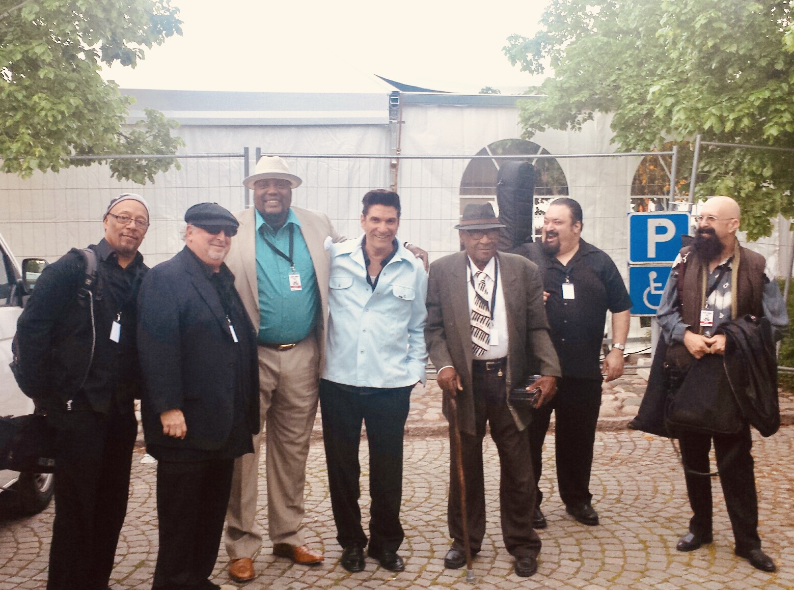 Rena Beavers, Fred Kaplan, Sugaray Rayford, Bob Corritore, Henry Gray, Kedar Roy, Junior Watson at the 2015 Mönsterås Blues Festival, Sweden. Photo Jan Aldorsson.