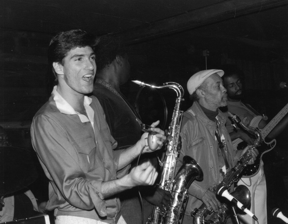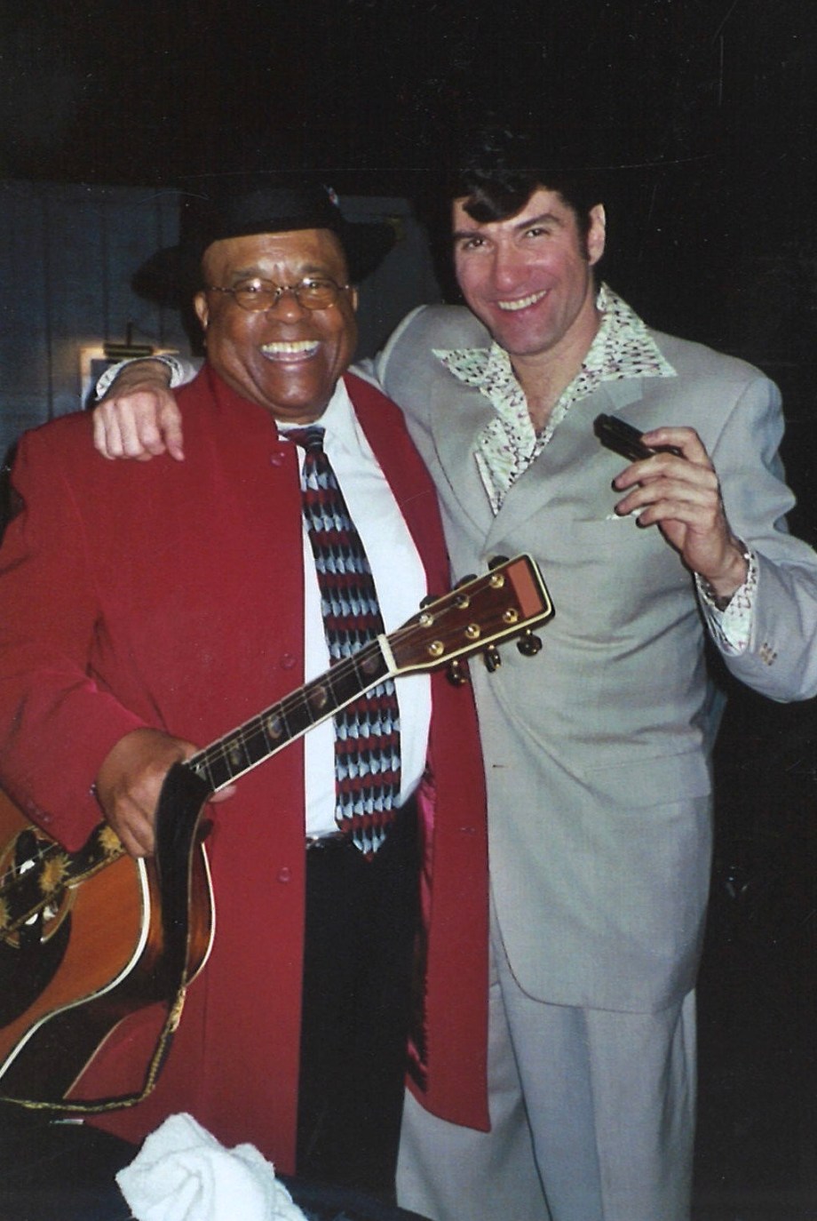 Bob backing Bo Diddley at the Mason Jar (Photo by Daniel Burnette – 1990)