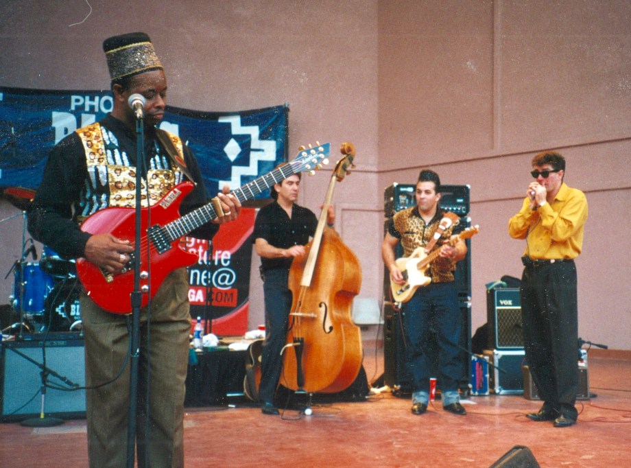 Lil’ Ed Williams, Paul Thomas, Kid Ramos, Bob Corritore – Blues Blast 2000, Mesa Amphitheatre (Photo by Steve Hinrichsen)