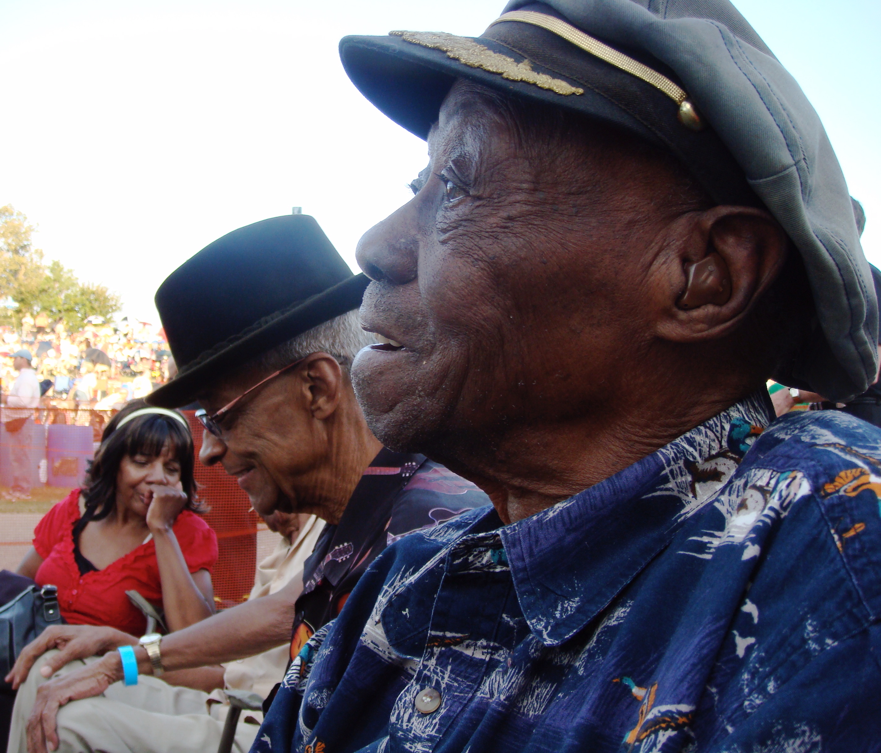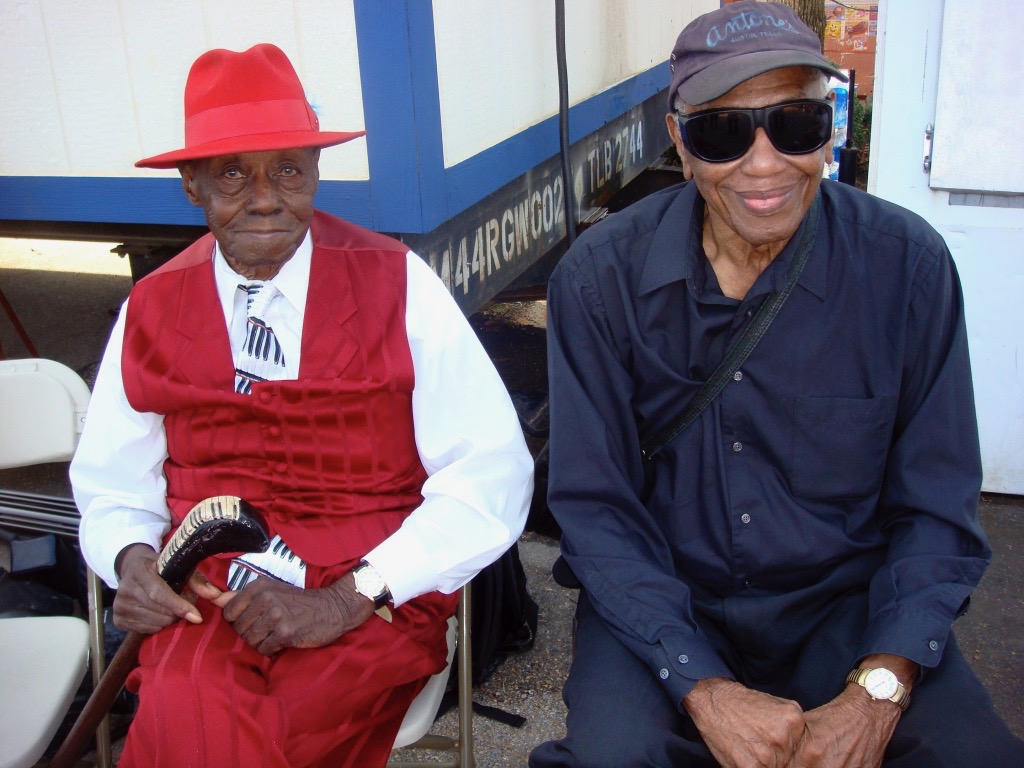 Pinetop Perkins and Calvin “Fuzz” Jones, 2008 King Biscuit Blues Festival, Helena, Arkansas. Photo Bob Margolin.