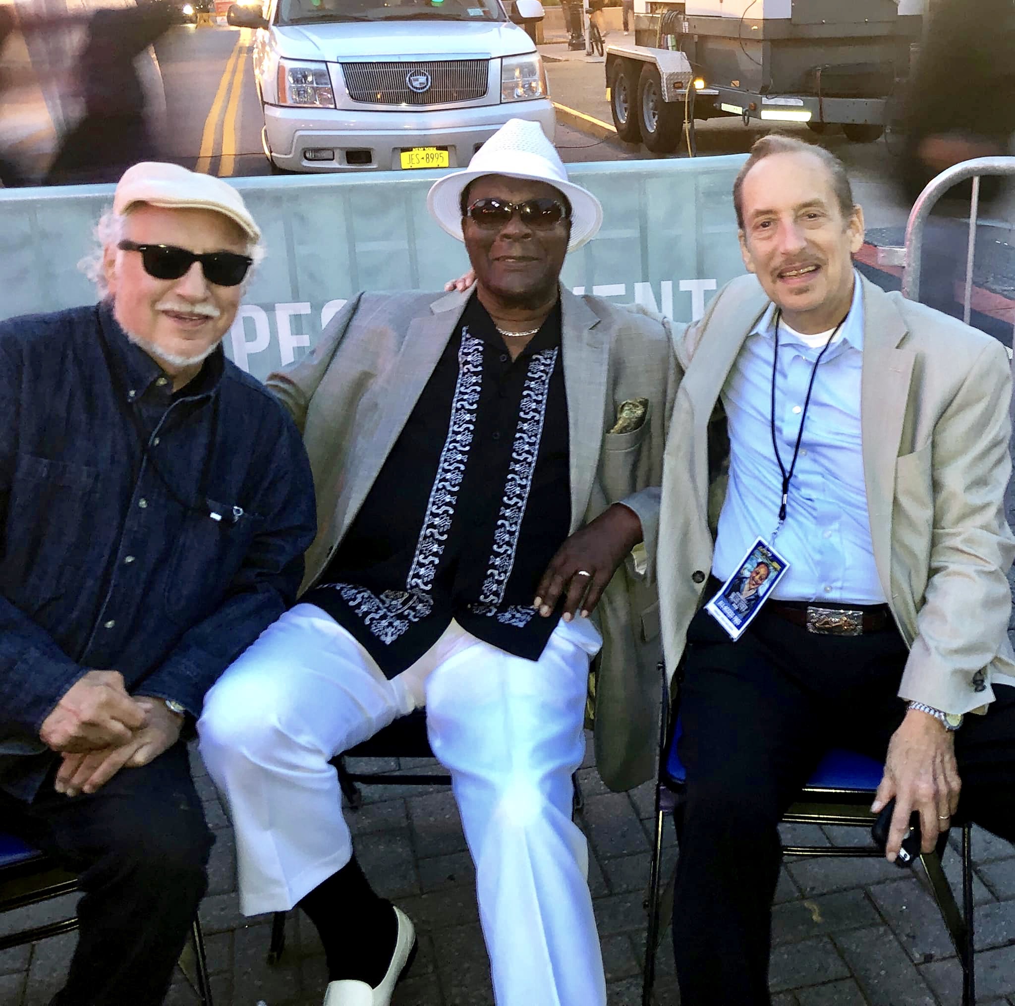 Muddy Waters alumni reunion at the 2019 Niagara Falls Blues Festival: Bob Margolin, Luther “Guitar Junior” Johnson, Jerry Portnoy.